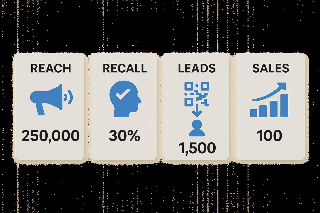 - Leads/Footfall: ใส่ QR/UTM ไปยังหน้าแลนดิ้งเฉพาะแคมเปญ, ใช้คูปองหรือเบอร์โทรศัพท์เฉพาะติดป้าย ติดกล้องนับคนเข้า‐ออก และดูแหล่งที่มาจาก POS