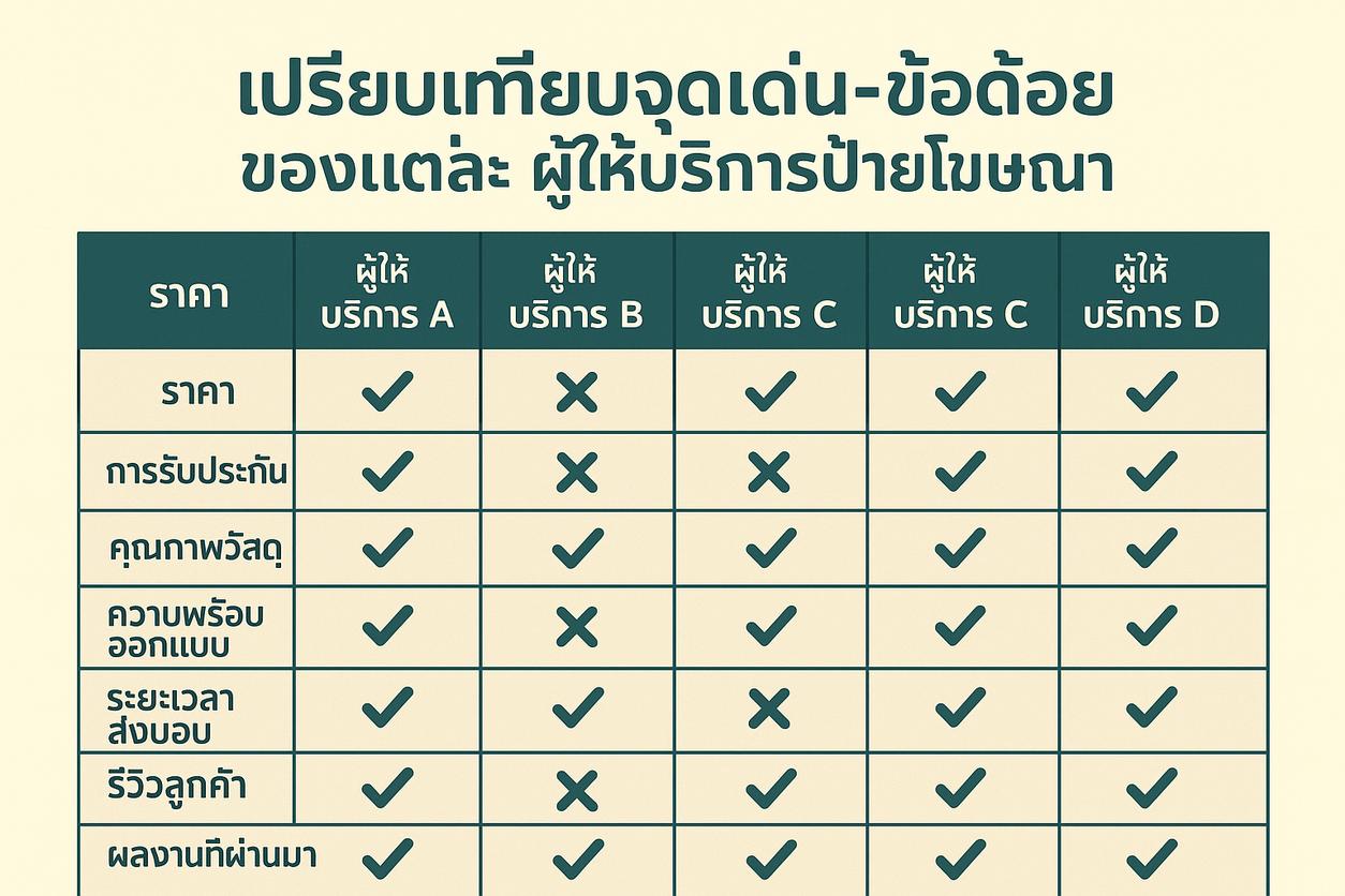 ข้อแนะนำ: แนะนำให้มีภาพเปรียบเทียบ (Before/After) หรืออินโฟกราฟิกประกอบในแต่ละหัวข้อเพื่อช่วยตัดสินใจ ดาวน์โหลดคู่มือเลือกป้ายฟรี ได้ที่ลิงก์ด้านล่าง!