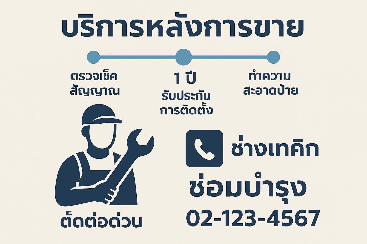 บริการดูแลหลังการขายของเรา ครอบคลุมทั้งการรับประกัน งานซ่อมแซม และคำแนะนำในการดูแลรักษาป้าย เพื่อยืดอายุการใช้งานและคุ้มค่ากับการลงทุน ทีมช่างผู้เชี่ยวชาญพร้อมให้คำปรึกษาและแก้ไขปัญหาตลอดอายุงาน ไม่ว่าจะเป็นการล้าง ทำความสะอาด ตรวจสอบความเรียบร้อย หรือรับมือเหตุฉุกเฉิน มีบริการแจ้งเตือนเช็ครอบบำรุงรักษาทุกปี และสายด่วนให้คุณติดต่อได้ทันที ช่วยให้คุณมั่นใจว่า ป้ายโฆษณาของคุณดูดีเหมือนใหม่ตลอด พร้อมใช้งานเต็มประสิทธิภาพ แนะนำให้อ่านบทความ “คู่มือการเลือกป้ายโฆษณาเพื่อกระตุ้นยอดขาย” เพื่อเรียนรู้เทคนิคเพิ่มเติม หรือสอบถามข้อมูลบริการหลังการขาย/โปรโมชั่นเพิ่มเติมได้เลย – กดติดตามหรือแชทกับทีมงานได้ทันทีเพื่อรับสิทธิพิเศษ!