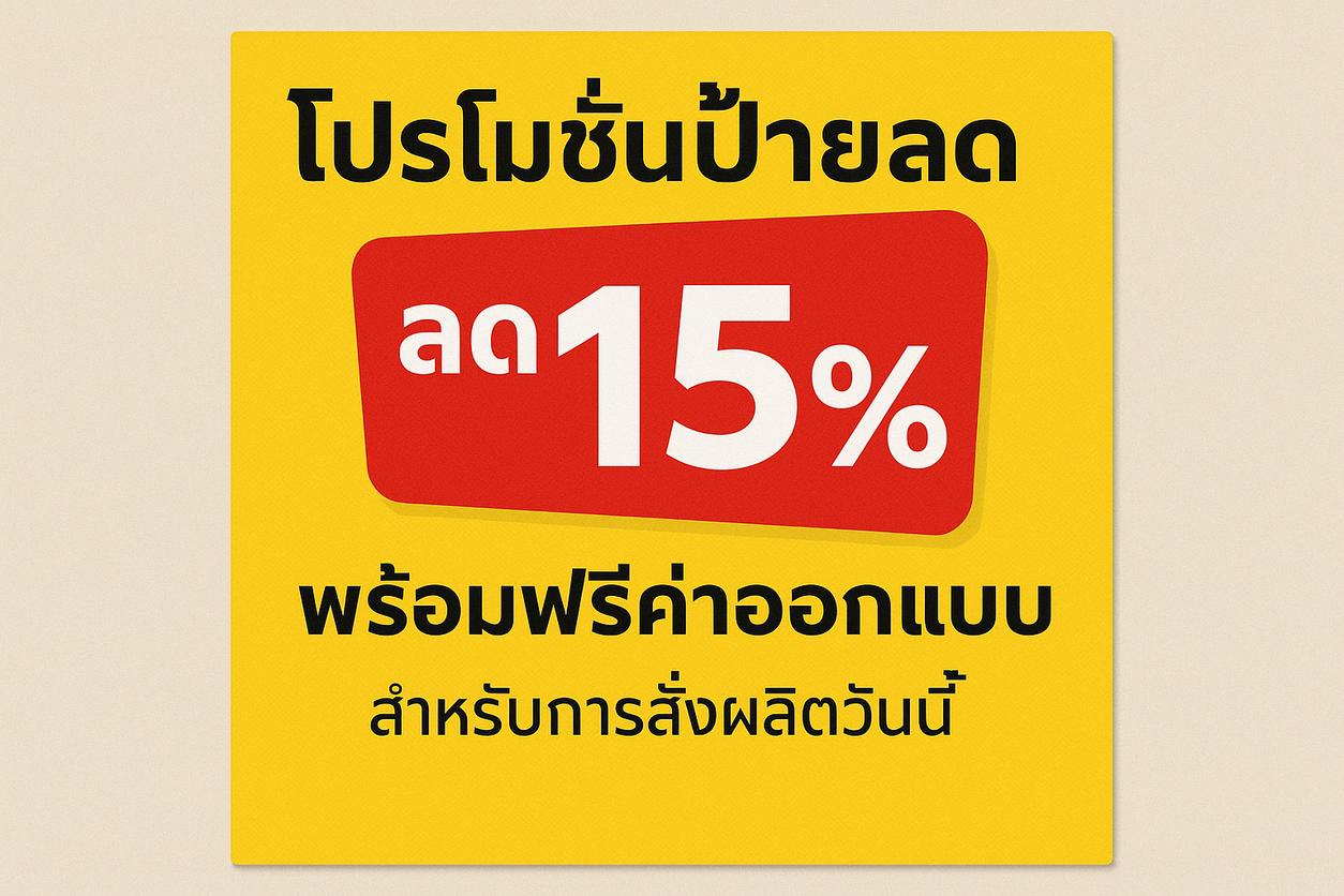 ### โปรโมชั่นพิเศษ: สั่งผลิตป้ายวันนี้ รับส่วนลด 15% และฟรีค่าออกแบบ!