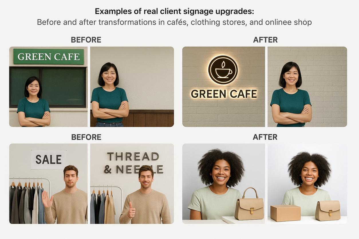- เพิ่มภาพอินโฟกราฟิกเปรียบเทียบป้ายก่อน-หลังติดตั้ง หรือกระบวนการสื่อสารกับลูกค้า