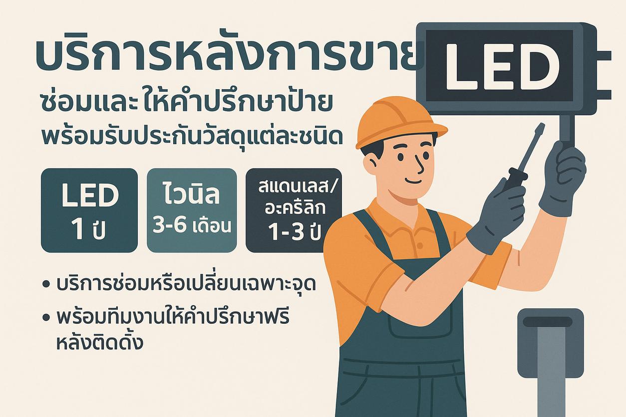 ### บริการหลังการขาย การรับประกัน และเคล็ดลับการดูแลป้าย