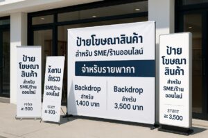 ป้ายโฆษณาสินค้า สำหรับ SME/ร้านออนไลน์: คู่มือเลือก–ออกแบบ–สั่งทำ + ราคาและแพ็กเกจโปร่งใส