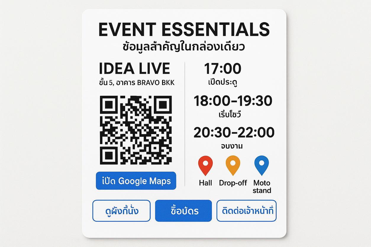 Event Essentials — ข้อมูลสำคัญในกล่องเดียว (สแกนแล้วไปต่อได้ทันที)