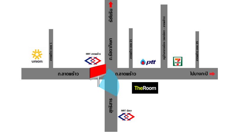 ป้ายบนอาคาร ช่วงแยกรัชดา – ลาดพร้าว มุ่งหน้าไปห้าแยกลาดพร้าวติดกับสถานี MRT ลาดพร้าว