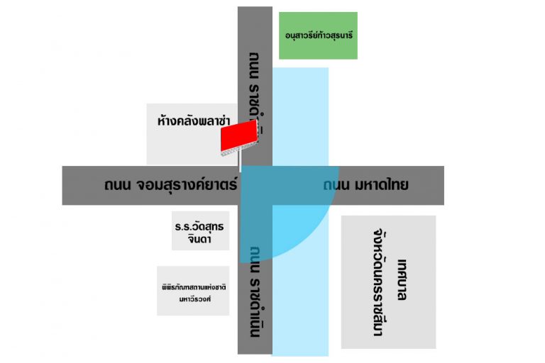 รับรถที่วิ่งบนถนนมหาดไทย เข้าสู่ห้างคลังพลาซ่า