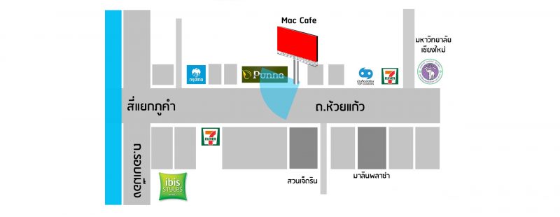 Detial : ตั้งอยุ่บนอาคารชั้น 2 บนถนนห้วยแก้ว ซึ่งเป็นถนนสายหลักที่จะต้องผ่าน ก่อนวิ่งไปยังมหาลัยเชียงใหม่ ดอยสุเทพ หรือไหว้ครูบาศรีวิชัย